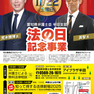 毎年恒例、半田支部主催の「法の日記念事業」を令和7年11月22日(土)にアイプラザ半田で開催します!